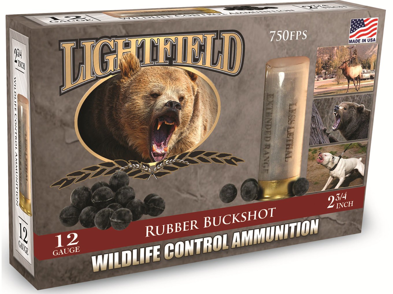 Lightfield believes ammunition that is safe and effective at close range on humans may be underpowered for large animals at greater ranges. Likewise, loads that are effective at extended ranges may be too powerful for humans at close range. In response to that situation, Lightfield has calibrated its wildlife control line into the following basic classes: Close range 8-25 yards, Mid-range 15-40 yards and Extended range 30+ yard.